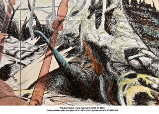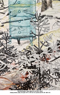 She was first awed by forest landscape in the Colombian jungle, along the Amazon, when she was visiting the family of her family's Colombian exchange student. The enormous buttresses of the towering trees and the tangled lianae captured her imagination. While at the Bunting Institute at Radcliffe Brackett made mural sized black and white drawings. Later she was able to continue using rainforest images because of opportunities to draw and photograph in both Malagasy and Costa Rican jungles. Having grown up with parents who believed that we are on this earth to make it better, she wanted to draw attention to the plight of jungles, so the work began to have an environmental emphasis. Ultimately, needing to find forests closer to home, she took on a project in which she did a drawing a day for a year of natural outdoor subjects, and also began focusing on nordic northern forests. She found and hiked to pockets of old growth forest in northern New England to photograph. Drawings and paintings done in the studio became an exhibition which traveled to 8 locations. ”Remnants: Ancient Forests & City Trees.” she juxtaposed and fragmented urban and forest trees, suggesting the struggle between constraint and freedom, the conflict of the natural and man-made worlds.
