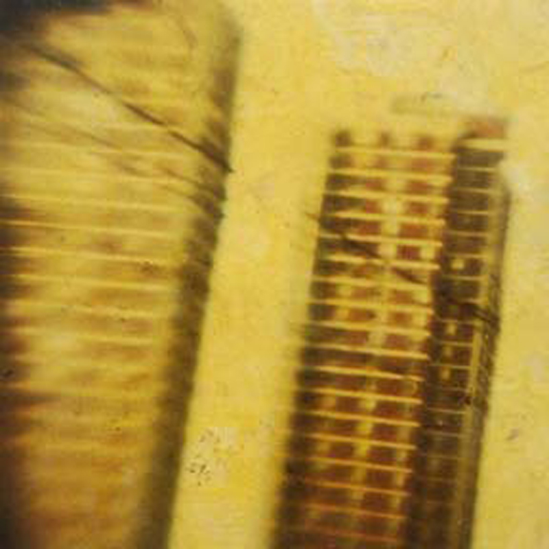 Pigment prints on Amate paper, varnished on wood panel, 12" x 12".