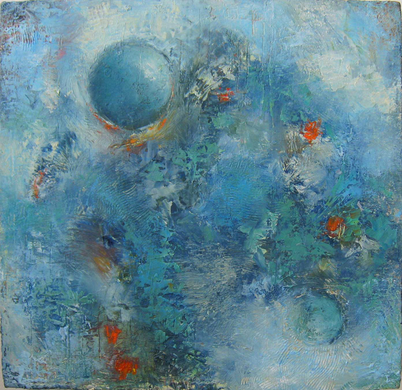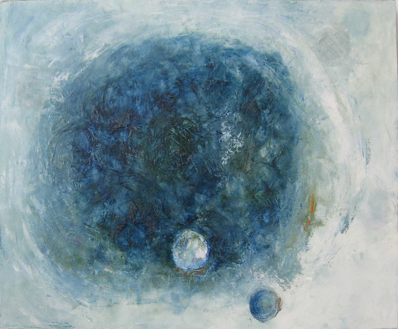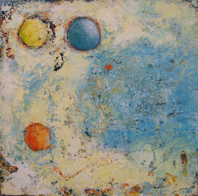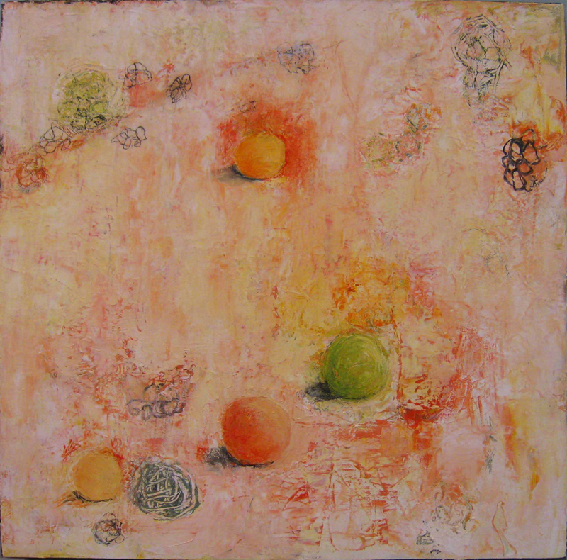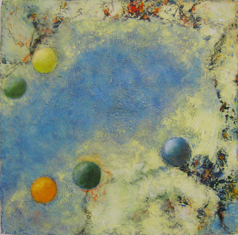 I have always used the abstract image of the sphere as a metaphor for the self. In these new paintings, I explore the various components of the self – the persona, the ego, the shadow, the anima/animus as they variably emerge and recede over a lifetime. Some aspects of the self may remain hidden until they unexpectedly appear in the second half of life.